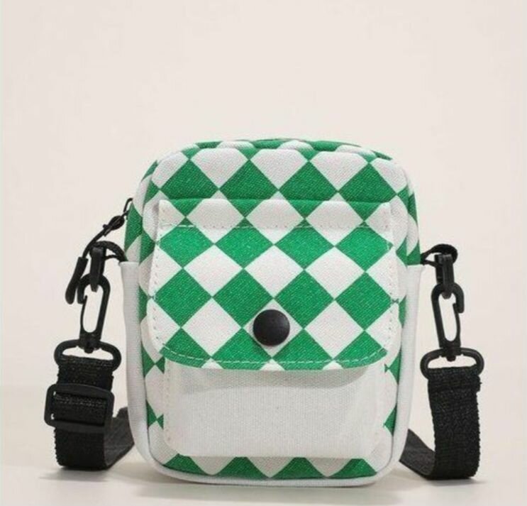 Ajoutez une touche rétro à votre style avec ce sac bandoulière à motif carreaux verts. Conçu pour les essentiels quotidiens, il est compact mais spacieux. Idéal pour les sorties en ville, il allie mode et fonctionnalité. Bandoulière réglable pour plus de confort.