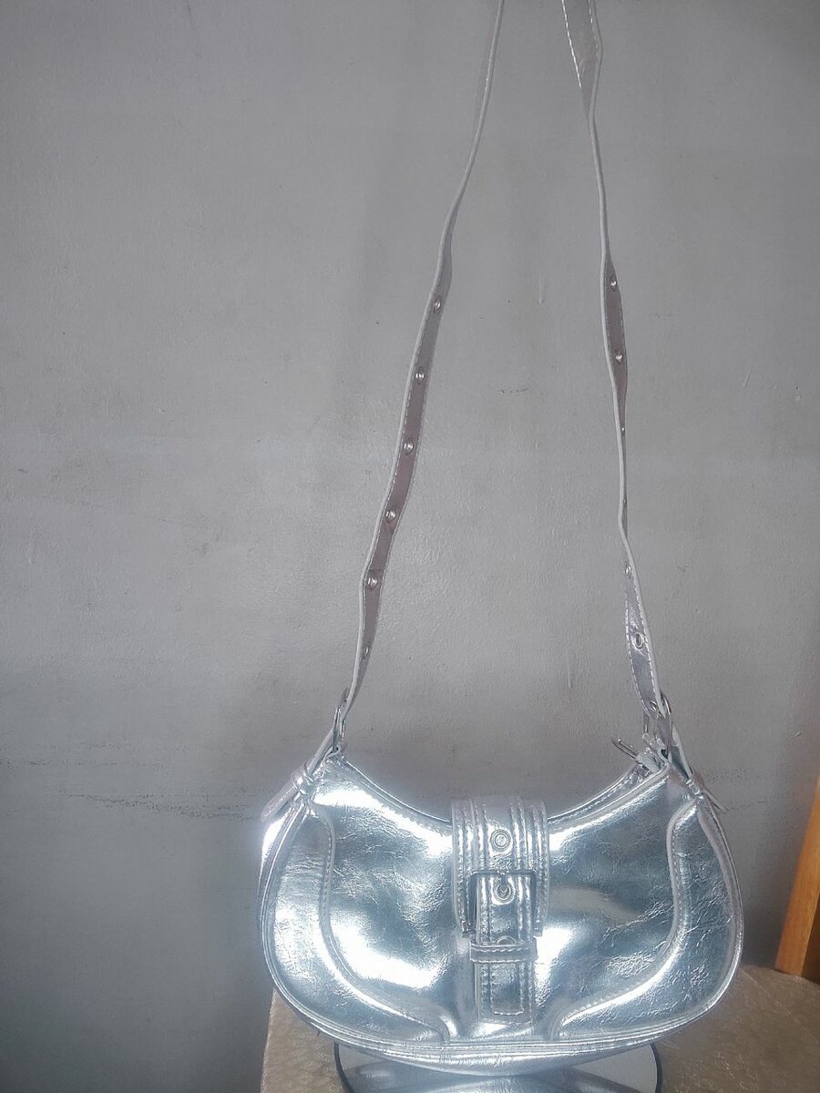 Élégant sac à bandoulière argenté, idéal pour une soirée ou une sortie en ville. Conception chic, parfait pour ajouter une touche glamour à votre tenue. Espace suffisant pour vos essentiels quotidiens.