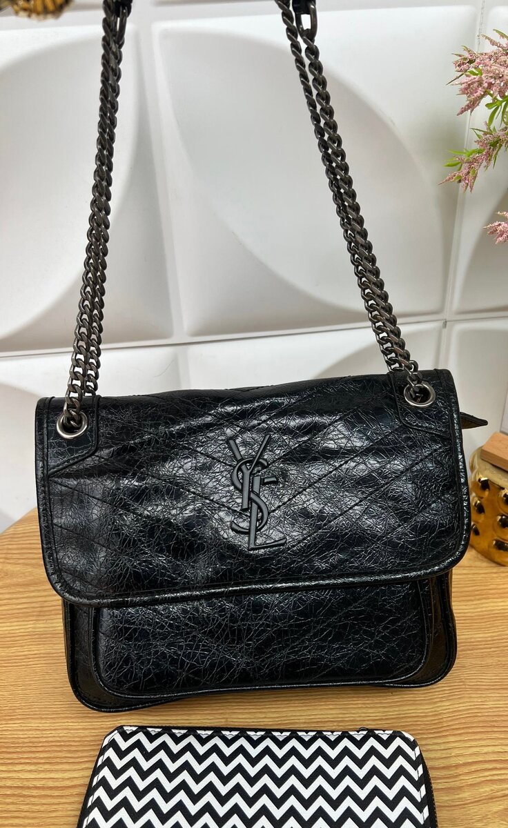 Élégant et spacieux, ce sac bandoulière en cuir noir est le choix parfait pour compléter votre tenue. Sa finition raffinée et sa chaîne robuste apportent une touche de sophistication. Idéal pour un usage quotidien ou lors de sorties en soirée, ce sac est un incontournable pour toute garderobe moderne. Optez pour le style et la praticité avec ce superbe accessoire.