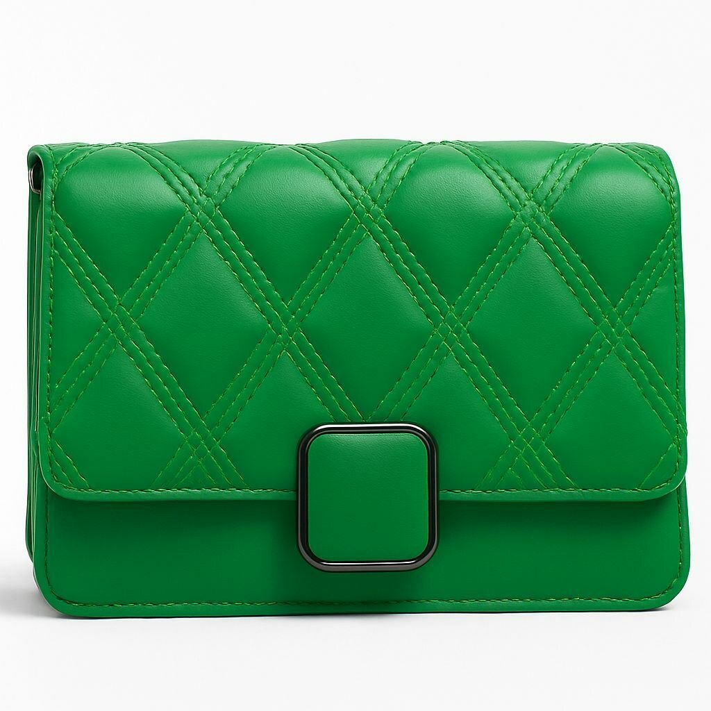 Élégant sac bandoulière en cuir vert avec finition matelassée. Idéal pour une touche de couleur audacieuse à votre tenue. Parfait pour les sorties en ville ou les soirées. Léger et pratique, il maintient vos essentiels organisés avec style.