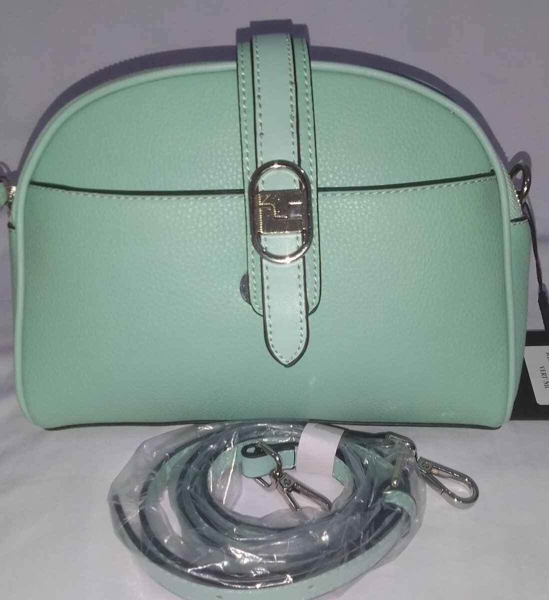 Élégant sac bandoulière en cuir vert menthe, idéal pour un usage quotidien. Compact, il offre suffisamment d'espace pour tous vos essentiels. Parfait pour une sortie décontractée ou une journée de shopping.