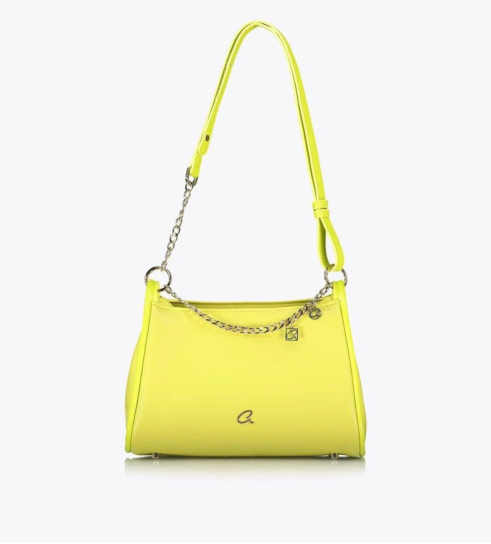 Ajoutez une touche éclatante à votre look avec ce sac bandoulière jaune vif. Conçu pour être à la fois pratique et élégant, il offre suffisamment d'espace pour tous vos essentiels quotidiens. Fait de matériaux de haute qualité, ce sac est parfait pour un usage quotidien ou des occasions spéciales. Sa bandoulière réglable et sa chaîne décorative ajoutent une touche moderne. Idéal pour celles qui recherchent un mélange de style et de fonctionnalité.