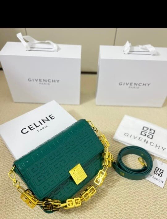 Découvrez ce sac bandoulière en cuir vert Givenchy, au design sophistiqué et moderne. Avec sa chaîne dorée élégante et sa construction de haute qualité, il est parfait pour les occasions spéciales et l'usage quotidien. Un choix exceptionnel pour rehausser votre style.