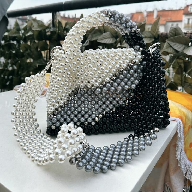 Découvrez ce sac bandoulière élégant, fabriqué avec des perles de haute qualité en noir et blanc. Parfait pour ajouter une touche chic à votre tenue, ce sac est idéal pour les sorties en ville ou les occasions spéciales. Léger et tendance, il se porte facilement grâce à sa bandoulière assortie. Optez pour ce modèle unique et faites tourner les têtes!