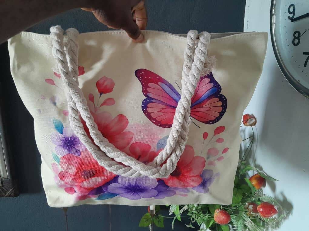 Ce sac cabas en toile, orné de motifs artistiques vibrants, est l'accessoire parfait pour un look élégant et décontracté. Avec ses poignées robustes en corde, il offre à la fois style et fonctionnalité pour vos sorties quotidiennes ou vos escapades au marché. Faites sensation avec cet ajout unique et pratique à votre garde-robe.