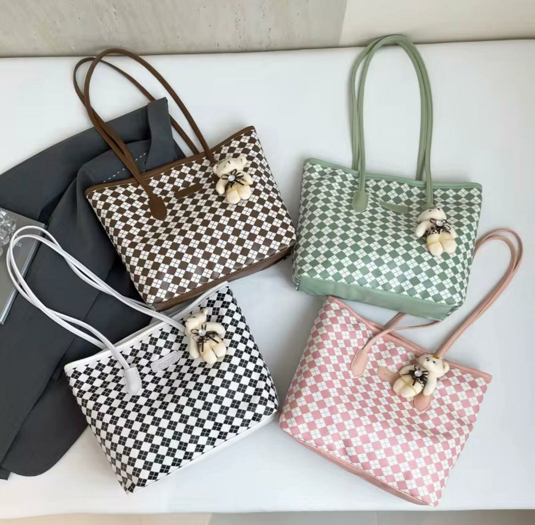 Optez pour ce sac cabas en toile chic avec motif à carreaux, idéal pour toutes vos sorties. Disponible en plusieurs coloris, il est orné d'un charmant ourson. Pratique et élégant, il deviendra votre allié au quotidien !