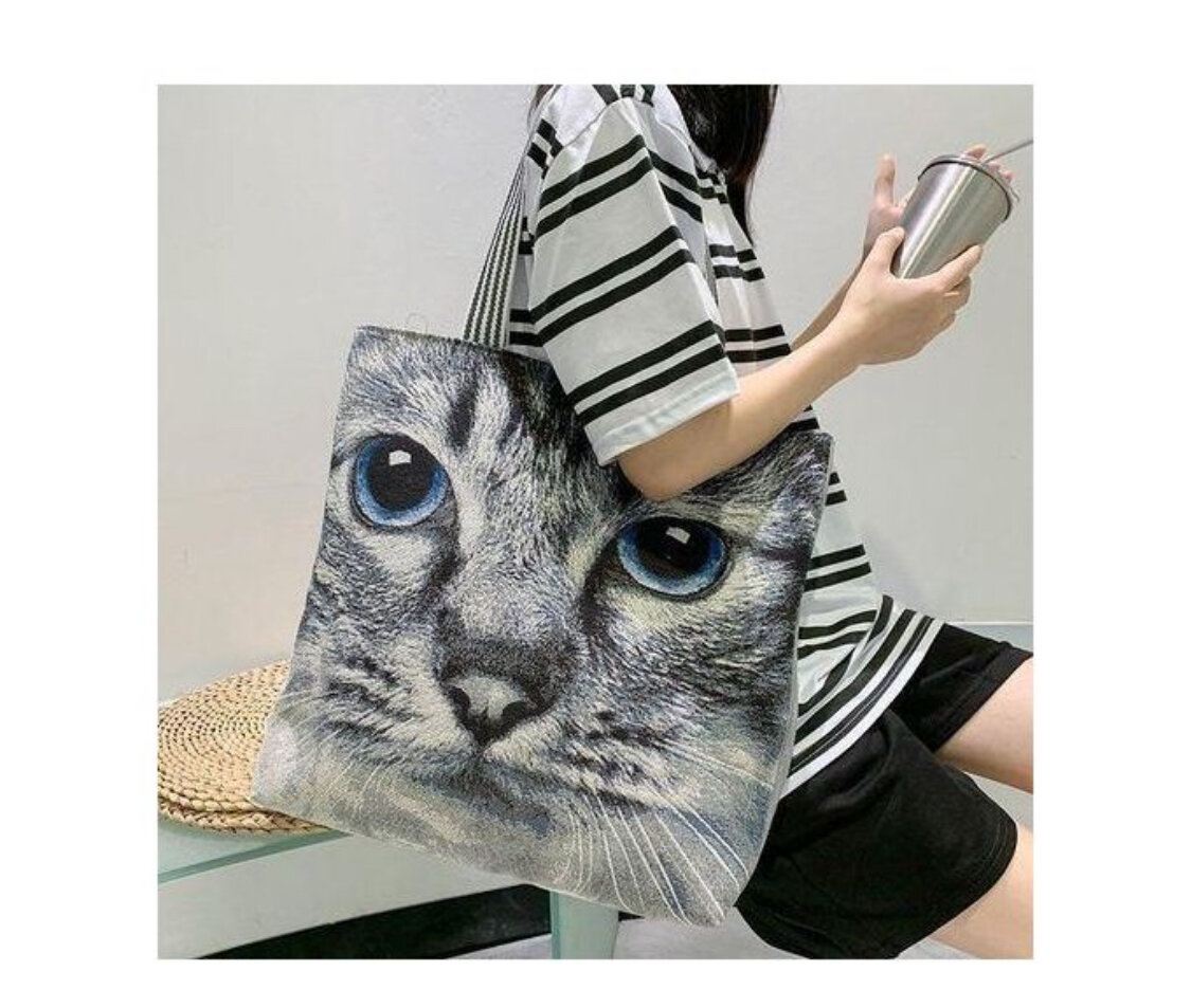 Sac cabas tendance avec motif de chat réaliste. Idéal pour les amoureux des chats, ce sac est parfait pour vos courses ou sorties décontractées. Spacieux et résistant, il apporte une touche fun à votre tenue.