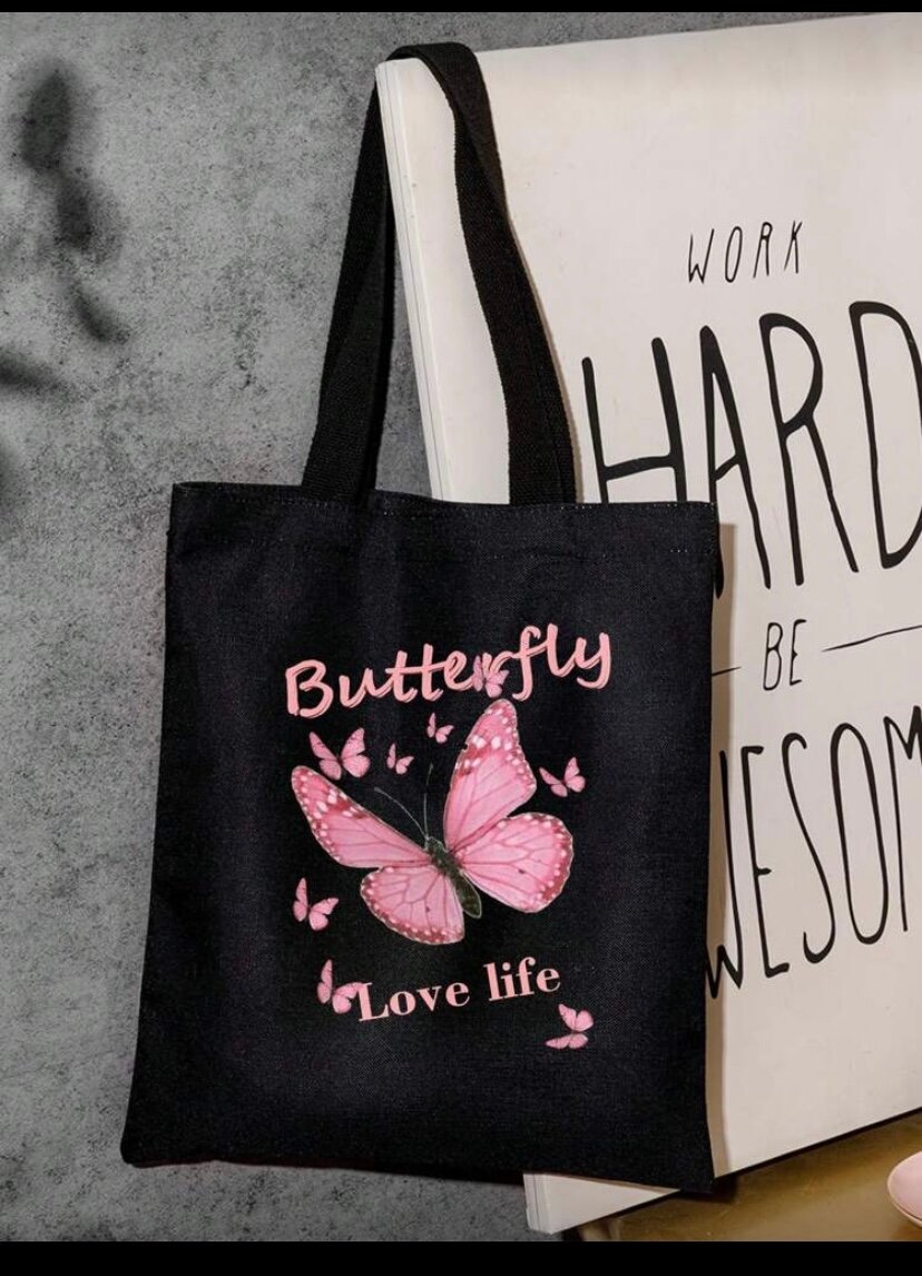 Exprimez votre style unique avec notre sac cabas ornée de papillons et l'inscription inspirante "Love Life". Parfait pour le shopping ou la plage, ce sac en toile est à la fois élégant et pratique.