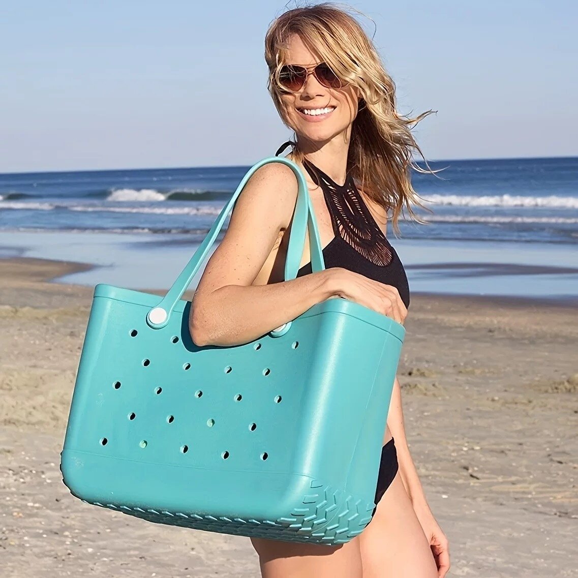 Découvrez notre sac de plage spacieux et étanche, parfait pour les journées ensoleillées. Fabriqué avec des matériaux durables, il peut facilement contenir tout ce dont vous avez besoin pour une journée au bord de la mer. Idéal pour les familles et les amateurs de plage, ce sac offre style et praticité avec ses poches perforées pour un séchage rapide. Faites de chaque sortie un moment pratique et élégant!