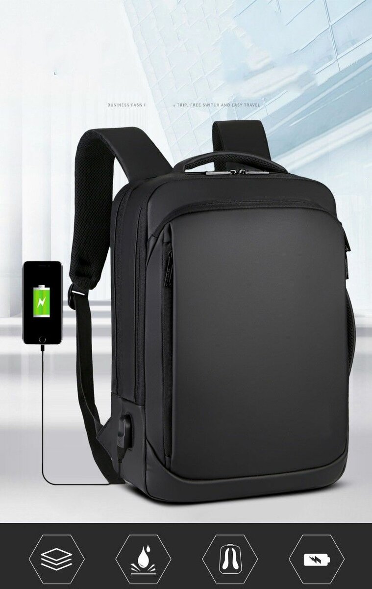Sac à dos poir élève, étudiants et travailleurs avec port USB ET IMPERMÉABLE