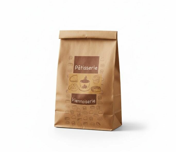 Sac en papier kraft idéal pour emballer vos pâtisseries et viennoiseries. Parfait pour les boulangeries.