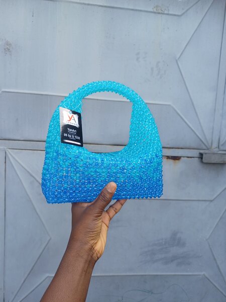 Sac à main perles bleu élégant
