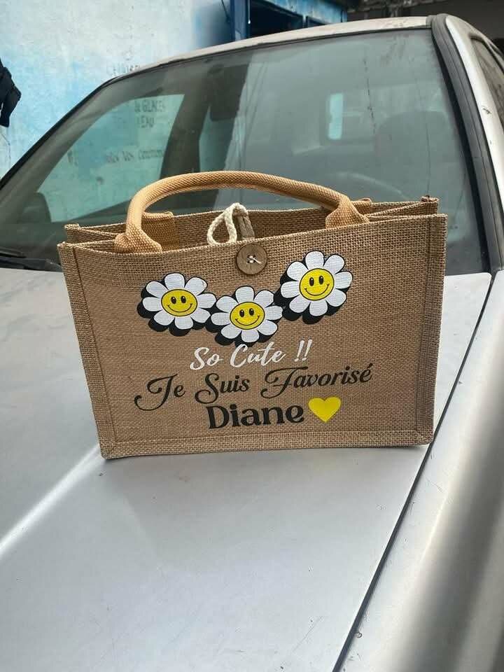 Ce sac en toile, orné de fleurs souriantes et d'un message positif, est parfait pour ajouter une touche joyeuse à votre tenue. Idéal pour le shopping ou une sortie décontractée, il offre à la fois style et fonctionnalité. Ses poignées robustes et son design unique en font un accessoire de mode incontournable. Parfait pour les amoureux de la mode et de la positivité.
