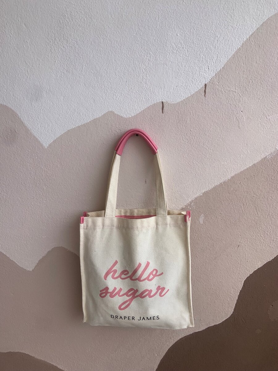 Adoptez le style avec ce sac fourre-tout chic "Hello Sugar" de Draper James. Fait en toile résistante, il est idéal pour une journée décontractée ou vos courses. Les anses roses ajoutent une touche de couleur vibrante. Parfait pour les amateurs de mode et de praticité!