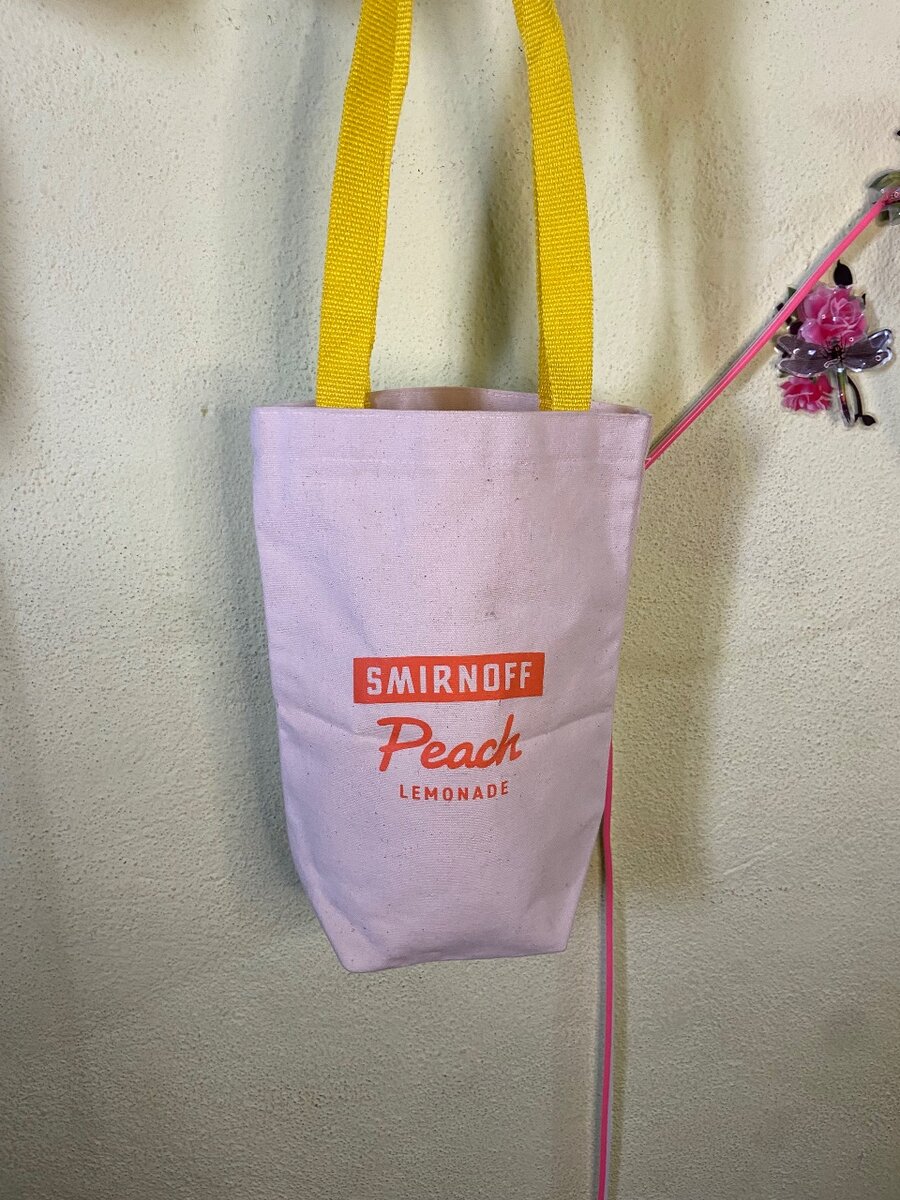 Élégant sac fourre-tout Smirnoff Peach Lemonade, parfait pour vos sorties estivales. Avec ses poignées robustes, transportez vos essentiels avec style. Idéal pour la plage ou le shopping.