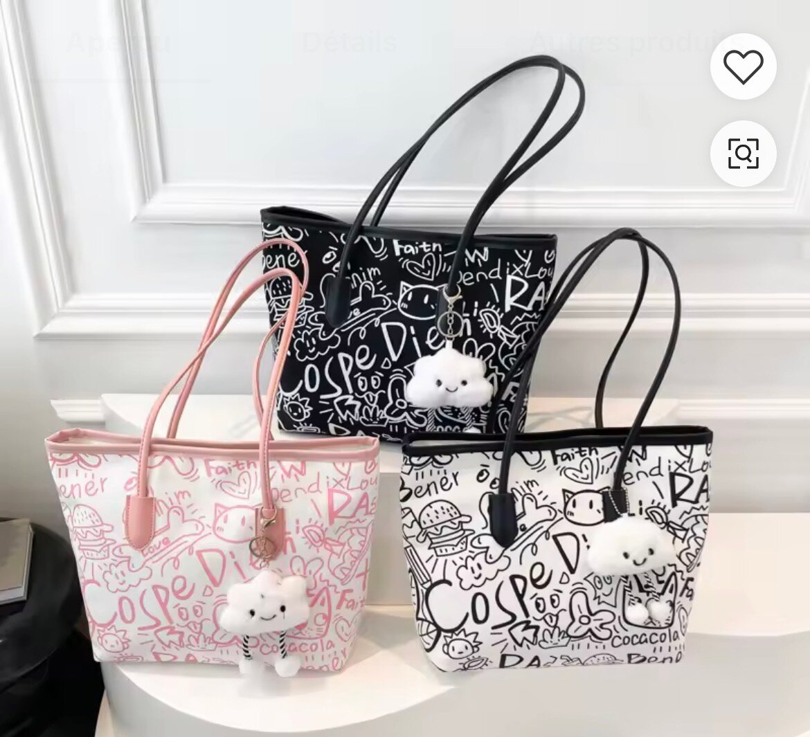 Découvrez ce sac fourre-tout élégant avec son design moderne et ses motifs artistiques. Parfait pour les sorties shopping ou le quotidien. Livré avec un adorable pendentif. Style unique et tendance assuré.