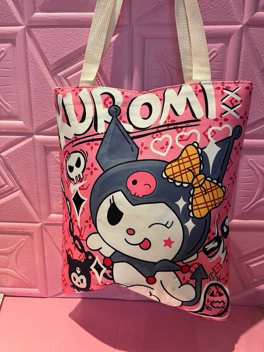 Ajoutez une touche de fantaisie à votre style avec ce sac fourre-tout Kuromi vibrant. Idéal pour les sorties ou le shopping, il est spacieux et résistant. Parfait pour les fans d'animations colorées!