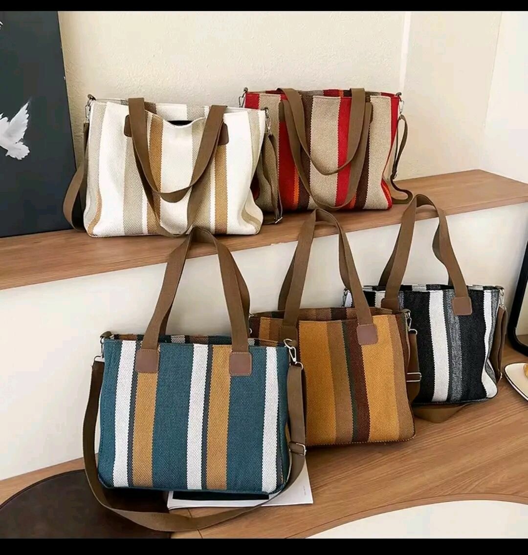 Ce sac fourre-tout en toile rayée allie style et praticité. Parfait pour une utilisation quotidienne, il offre un espace généreux pour vos essentiels. Fabriqué avec des matériaux durables, il est idéal pour une journée en ville ou une sortie décontractée. Choisissez parmi plusieurs combinaisons de couleurs vives pour compléter votre tenue.