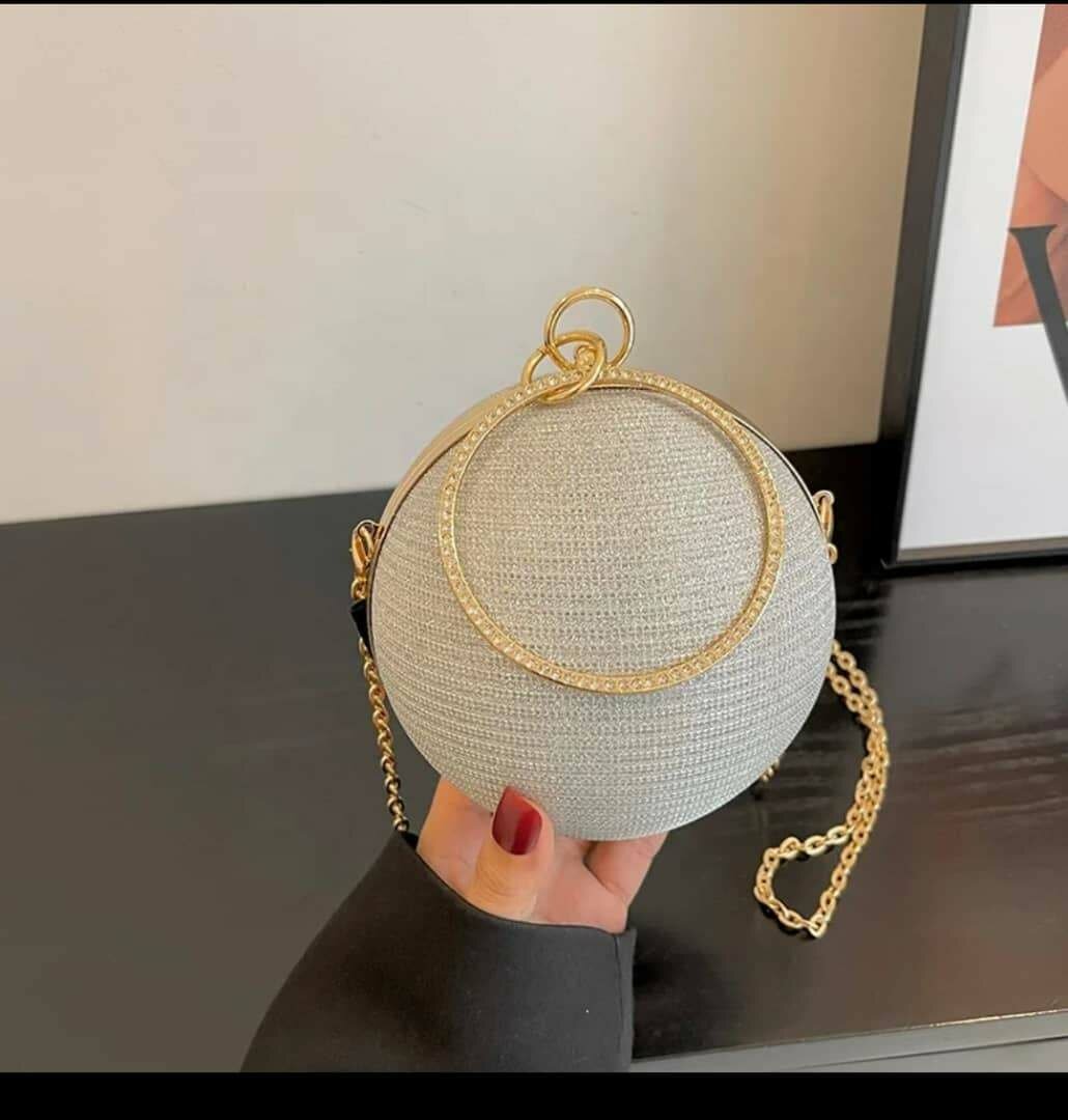 Découvrez ce sac rond élégant avec ses accents dorés lumineux, idéal pour les soirées ou une sortie chic. Sa chaîne dorée ajoute une touche glamour tout en offrant un style unique. Parfait pour transporter vos petits essentiels avec style et sophistication. Un accessoire indispensable pour briller en toute occasion.