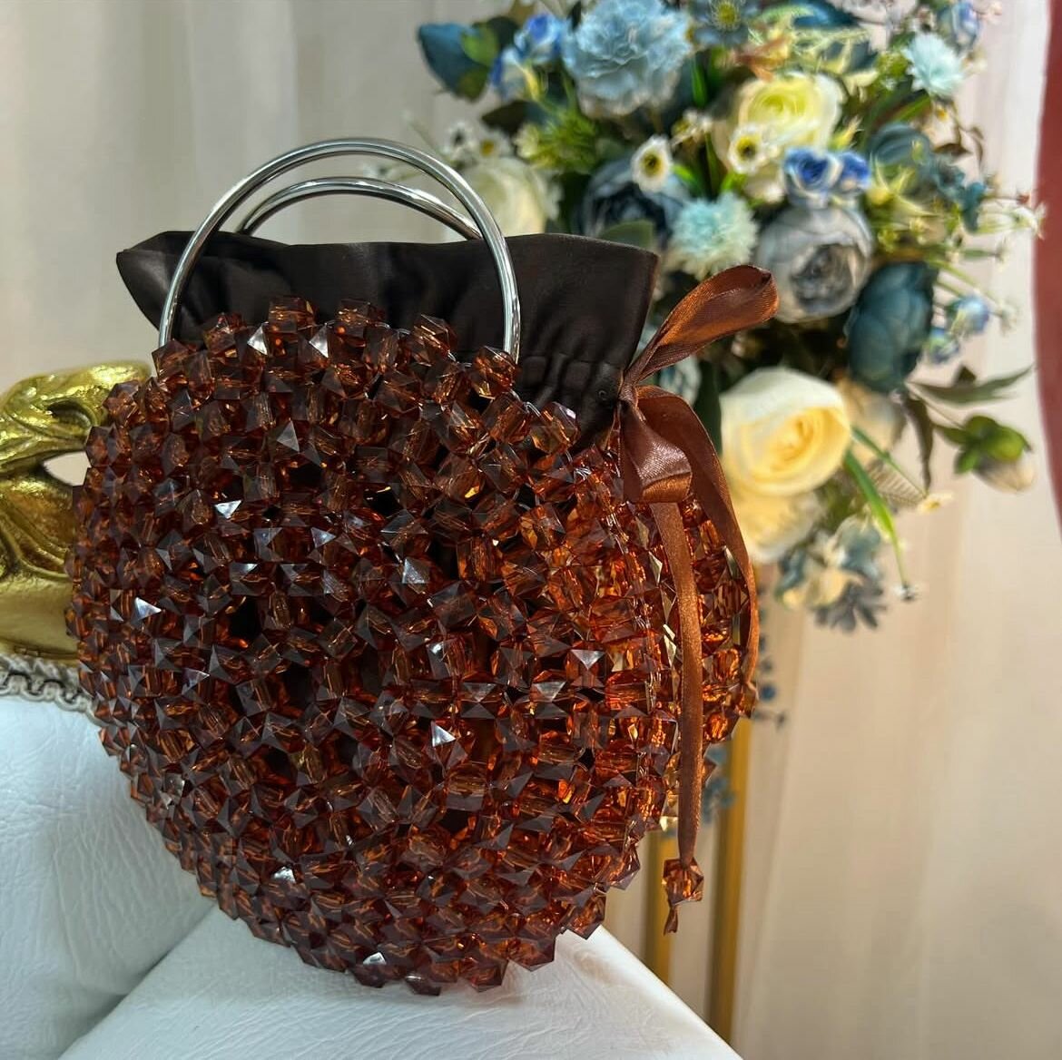 Découvrez ce sac rond en perles, parfait pour ajouter une touche d'élégance à votre tenue. Fabriqué avec des perles scintillantes, il est idéal pour les occasions spéciales ou les soirées. Compact mais spacieux, il garde vos essentiels à portée de main tout en étant un accessoire mode incontournable.