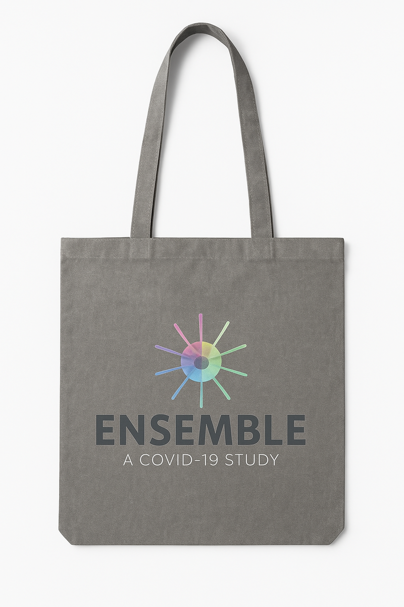 Démontrez votre soutien avec ce sac totebag élégant en toile grise. Parfait pour vos courses ou sorties quotidiennes, ce sac résistant affiche le logo coloré "ENSEMBLE" d'une étude COVID-19, alliant style et engagement. Idéal pour les sorties écologiques.