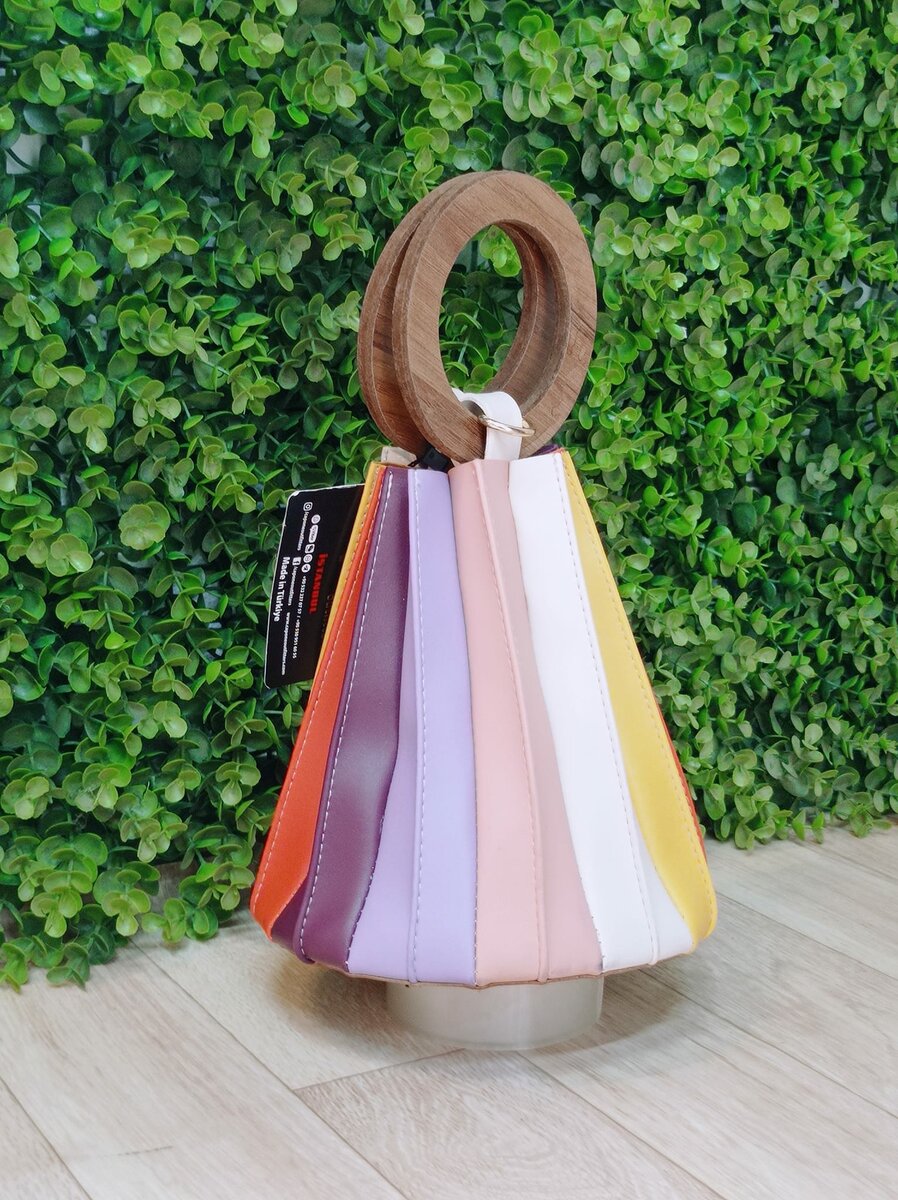 Sac à main en tissu multicolore avec poignées en bois
