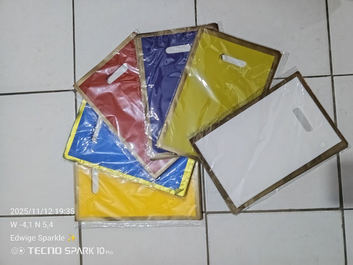 Ce sac plastique jaune avec poignée est parfait pour transporter vos affaires avec style. Idéal pour les courses, cadeaux ou événements. Robuste et réutilisable, il offre une excellente résistance et une prise confortable. Faites un choix pratique et élégant ! Il y a 25 sachets dans chaque paquet. On peut mettre soutien, caleçon, portable. Un tee shirt etc...