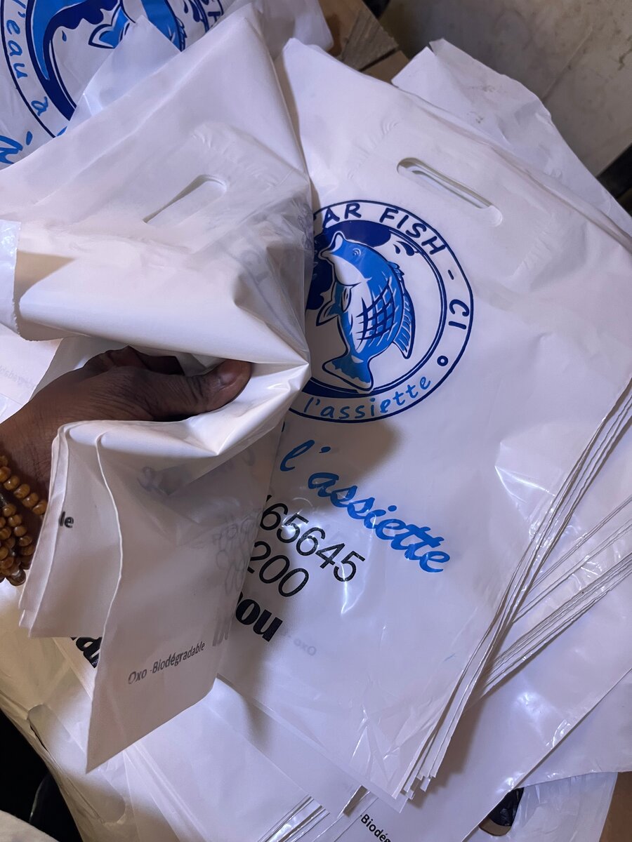Sacs plastiques durables avec imprimé personnalisé, idéals pour magasins ou événements. Pratiques avec poignées intégrées pour un transport facile. Quantité: 100