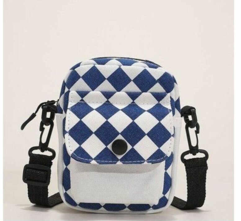 Sacoche élégante à carreaux pour accessoires essentiels. Compacte et pratique, elle est idéale pour un usage quotidien ou vos escapades. Avec sa bandoulière réglable, cette sacoche offre confort et style moderne.