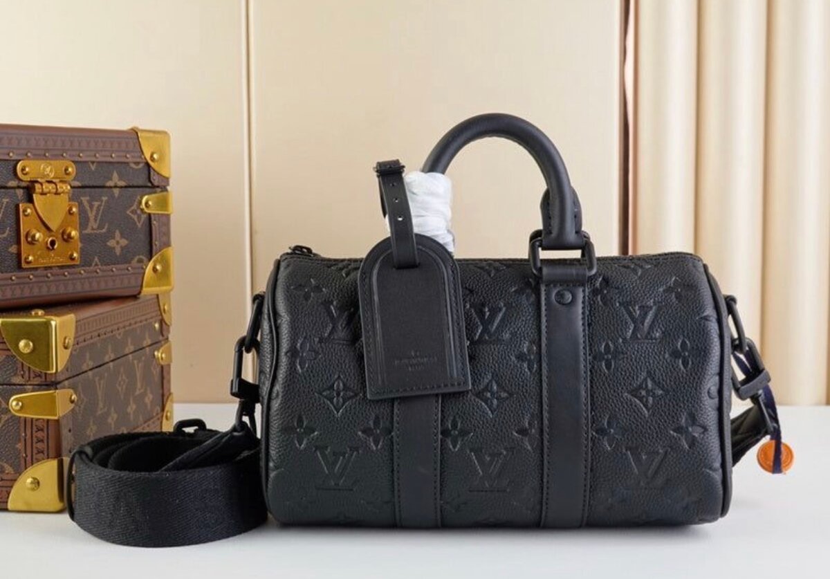 Sac à main Louis Vuitton en cuir noir avec motif monogrammé. Design élégant et pratique avec poignée et bandoulière réglable. Parfait pour un usage quotidien ou pour des occasions spéciales.