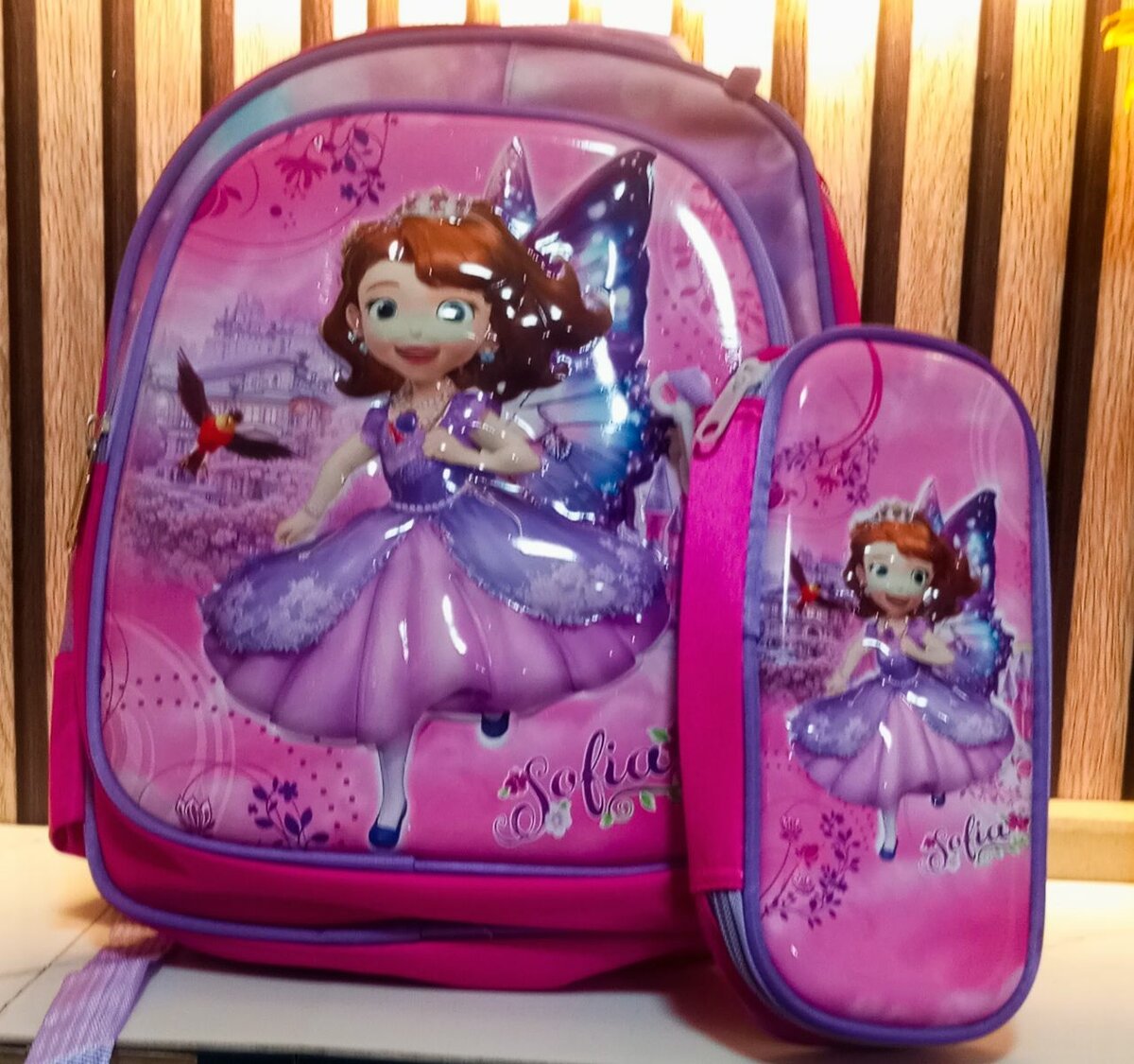 Sacs à dos pour fillette très coloré, beau, tendance et très pratique. En deux pièces constitué du grand sac à dos et d'une trousse très solide.