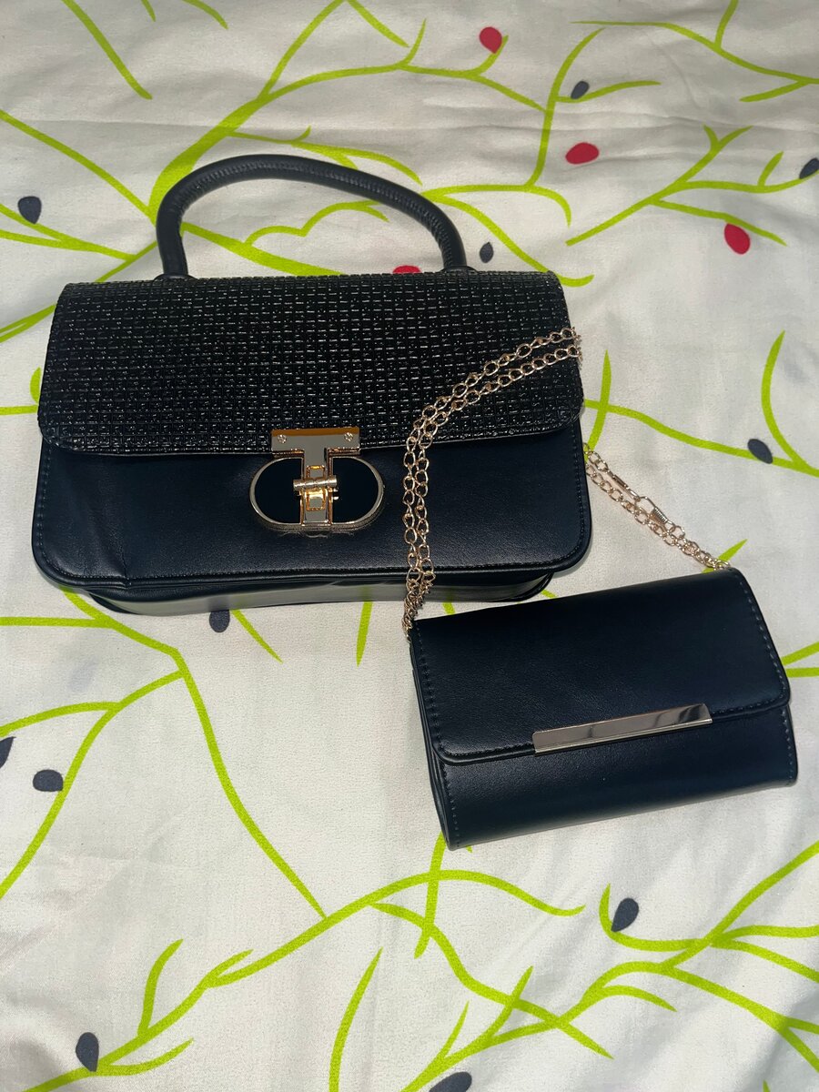 Sac à main de qualité, couleur noire avec bandoulière réglable. Format moyen, idéal pour le travail ou les sorties. Intérieur doublé avec 2 poches et un petit sac de plus