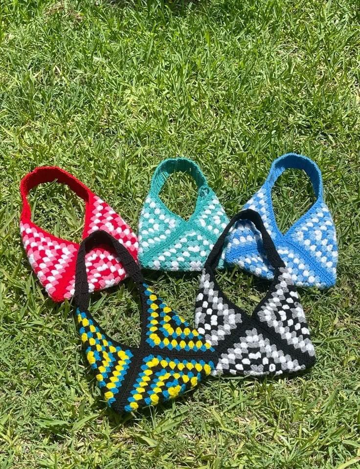 Découvrez nos sacs faits main au crochet, parfaits pour ajouter une touche de couleur à votre tenue.