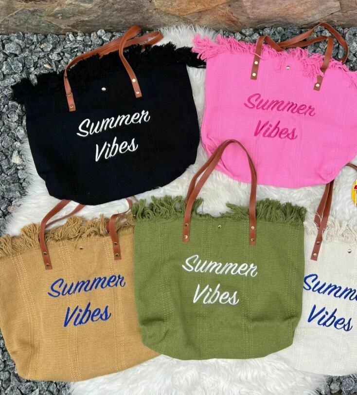 Ajoutez une touche de style estival avec ces sacs de plage en toile. Avec leurs couleurs vives et franges élégantes, ils sont parfaits pour une journée à la mer ou en ville. Chaque sac est spacieux et orné de l'inscription "Summer Vibes" pour inspirer vos aventures estivales.