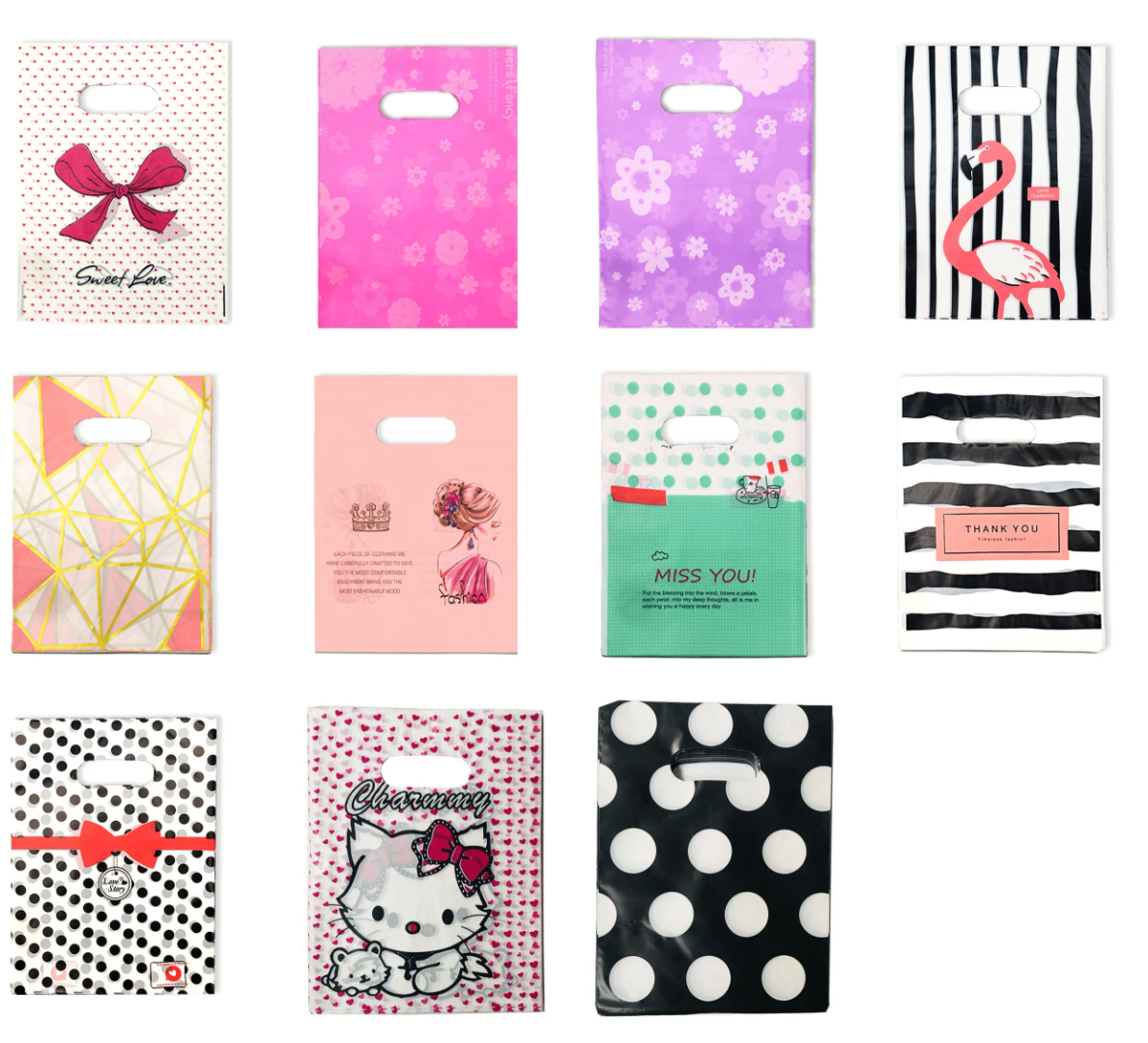 Ajoutez une touche de style à vos cadeaux avec ces sacs en plastique colorés et décoratifs. Disponibles en plusieurs tailles, ces sacs sont parfaits pour emballer des cadeaux, des produits ou des souvenirs. Leur design varié et attrayant les rend idéaux pour toutes les occasions. Fabriqués avec des matériaux durables, ces sacs sont à la fois pratiques et esthétiques. Parfaits pour les boutiques, fêtes ou cadeaux personnalisés!