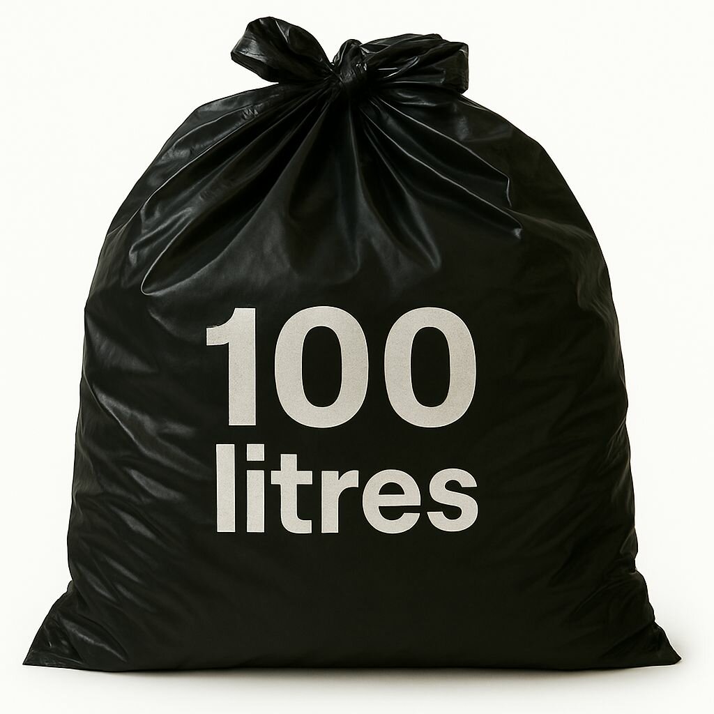 Sacs poubelle de 100 litres, parfaits pour la cuisine et le jardin. Fabriqués en matériau résistant avec attaches pratiques. Idéaux pour éliminer les déchets volumineux facilement et efficacement.