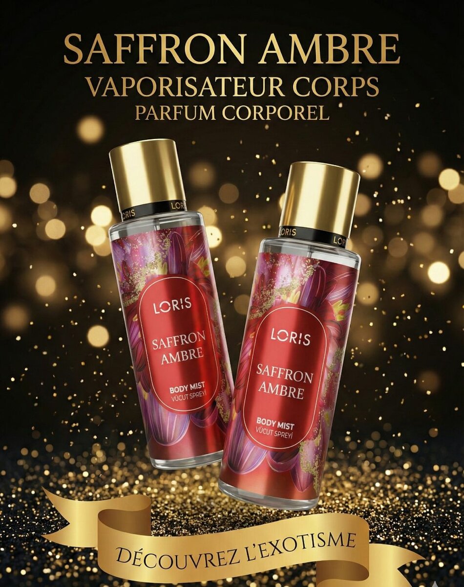 Découvrez le parfum exotique de la brume corporelle Loris Saffron Ambre. Ce spray corporel luxueux associe de riches notes de safran et d'ambre, laissant votre peau délicatement parfumée. Idéal au quotidien, il offre une fragrance rafraîchissante et longue durée. (Parfum unisexe)