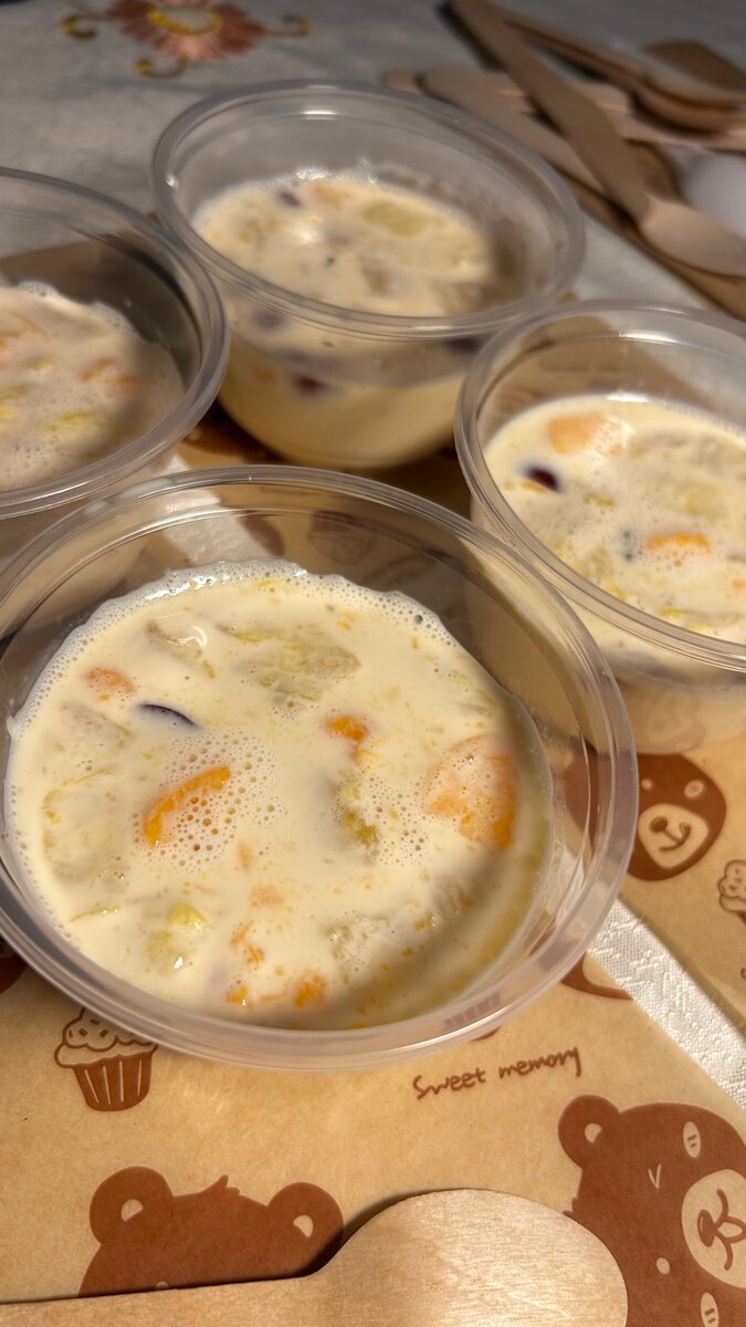 Découvrez notre délicieuse salade de fruits crémeuse, mélange parfait de saveurs tropicales, idéale pour un dessert frais et léger.
