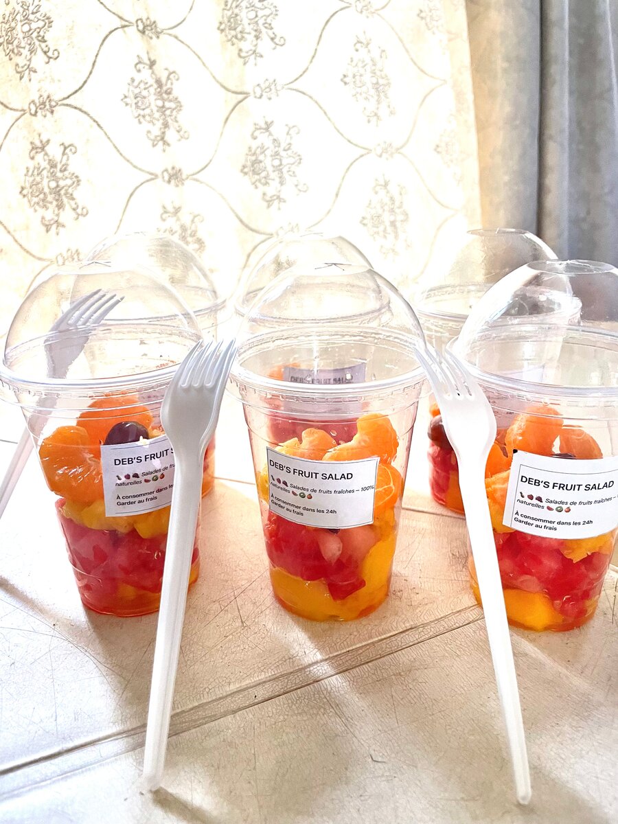 Découvrez notre salade de fruits frais, parfaite pour une pause vitaminée. Mélange de saveurs exotiques et naturelles, prête à déguster en toute occasion. Très pratique pour les voyages ou les pique-niques. Savourez le goût authentique des fruits mûrs à chaque bouchée!