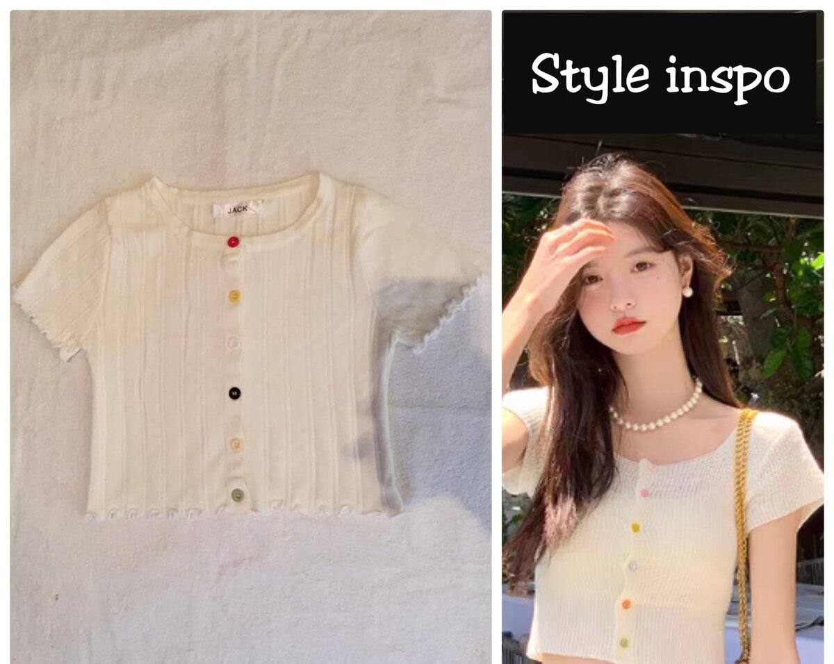 Button Front Rib-knit Crop Tee