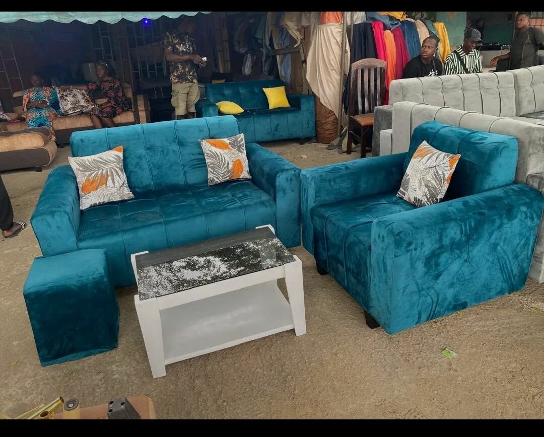 Renouvelez votre espace avec ce salon luxueux en velours bleu canard. Élégant et confortable, il comprend un canapé, un fauteuil et des coussins assortis pour une ambiance chic. Idéal pour le salon, il ajoute une touche de sophistication. Fabriqué avec des matériaux de haute qualité pour un confort durable.