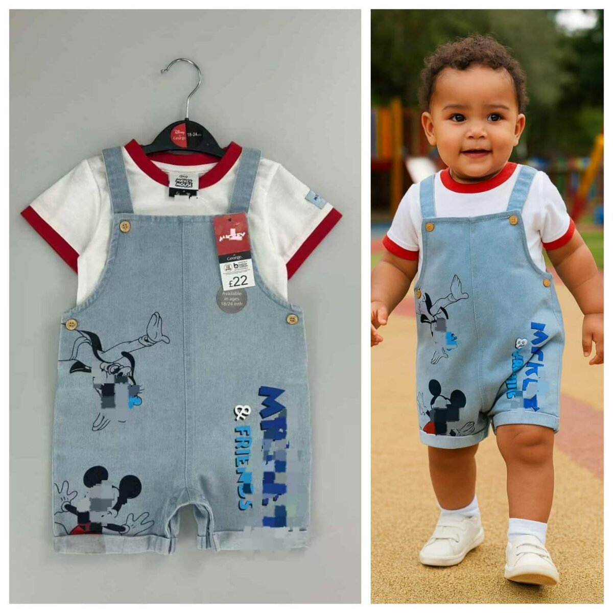 Adorable salopette en jean avec imprimé Mickey. Conçue pour un confort optimal, idéale pour les journées en plein air. Avec fermeture à boutons pour un habillage facile. 6 mois à 36 mois