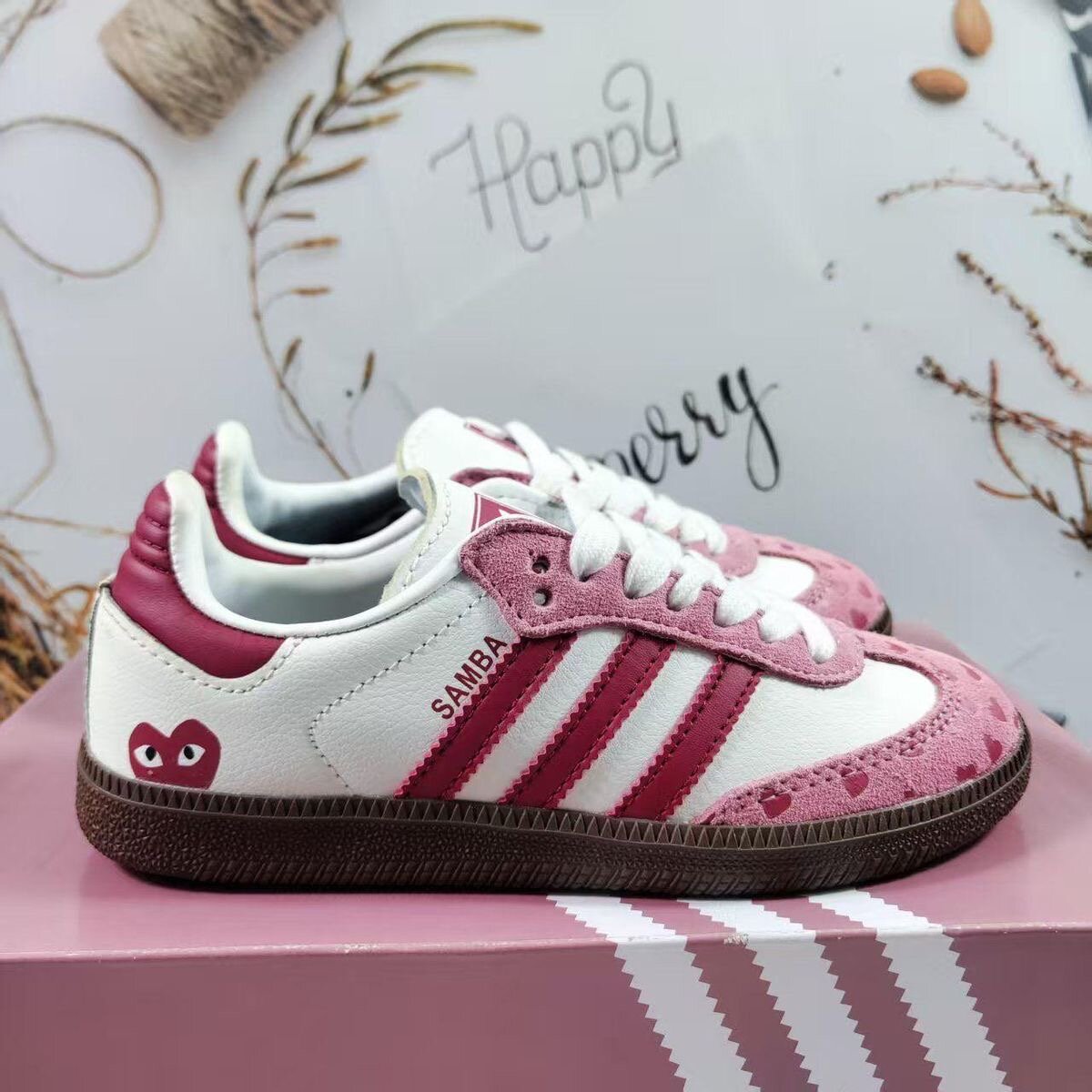 Découvrez les baskets Samba roses au design unique avec motifs cœurs. Parfaites pour apporter style et confort à votre look quotidien. Fabriquées avec des matériaux de qualité, elles s'adaptent à toutes vos tenues. Idéales pour femmes aimant exprimer leur personnalité à travers leurs chaussures.
