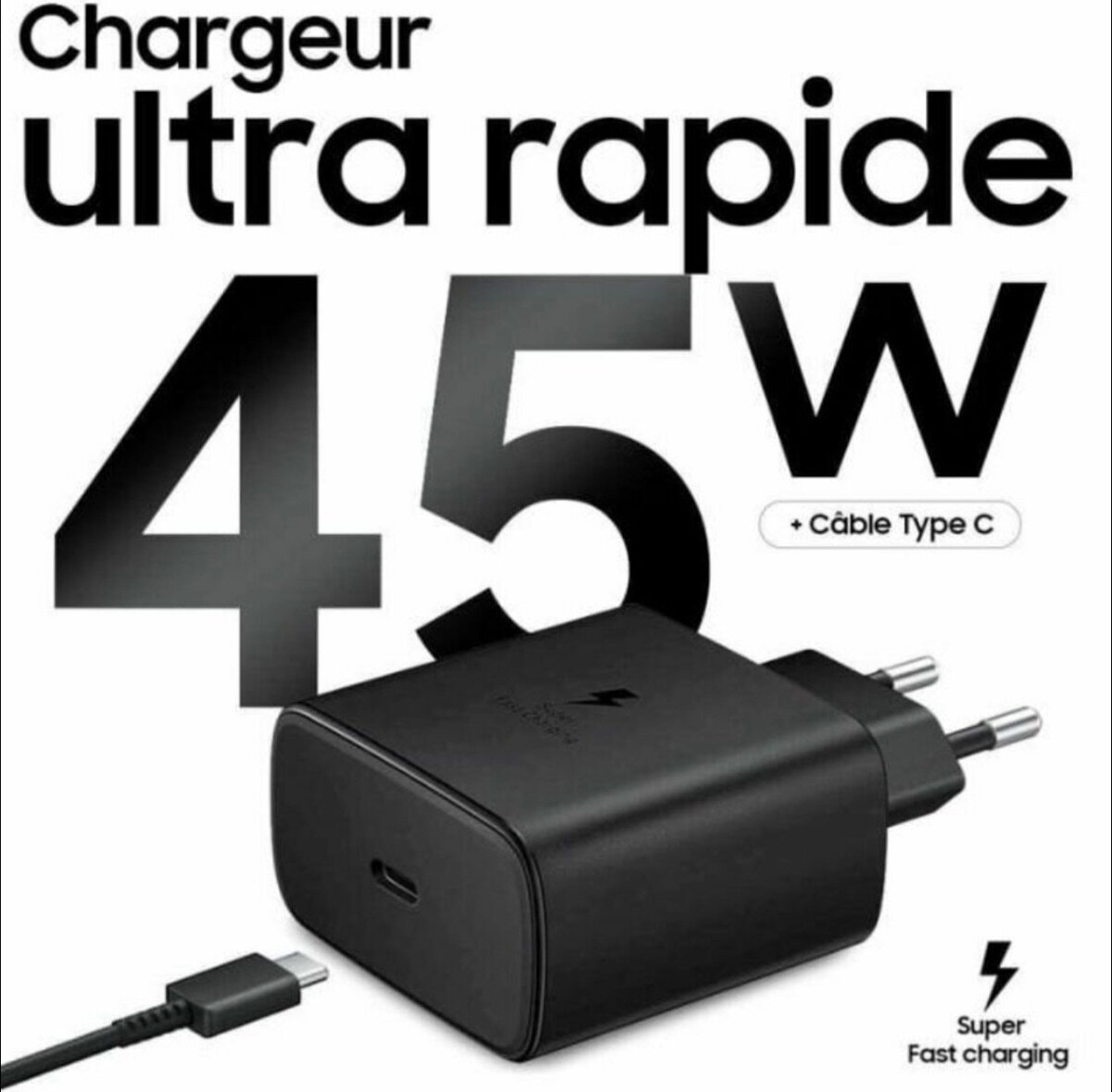 Experience ultra-fast charging with the Samsung 45W Charger. Perfect for keeping your devices powered up quickly whether you're at home or on the go. With a Type C cable, it's designed for efficiency and speed, making it an ideal choice for users needing a reliable power boost. Compatible with numerous Samsung models, ensuring safety and performance.