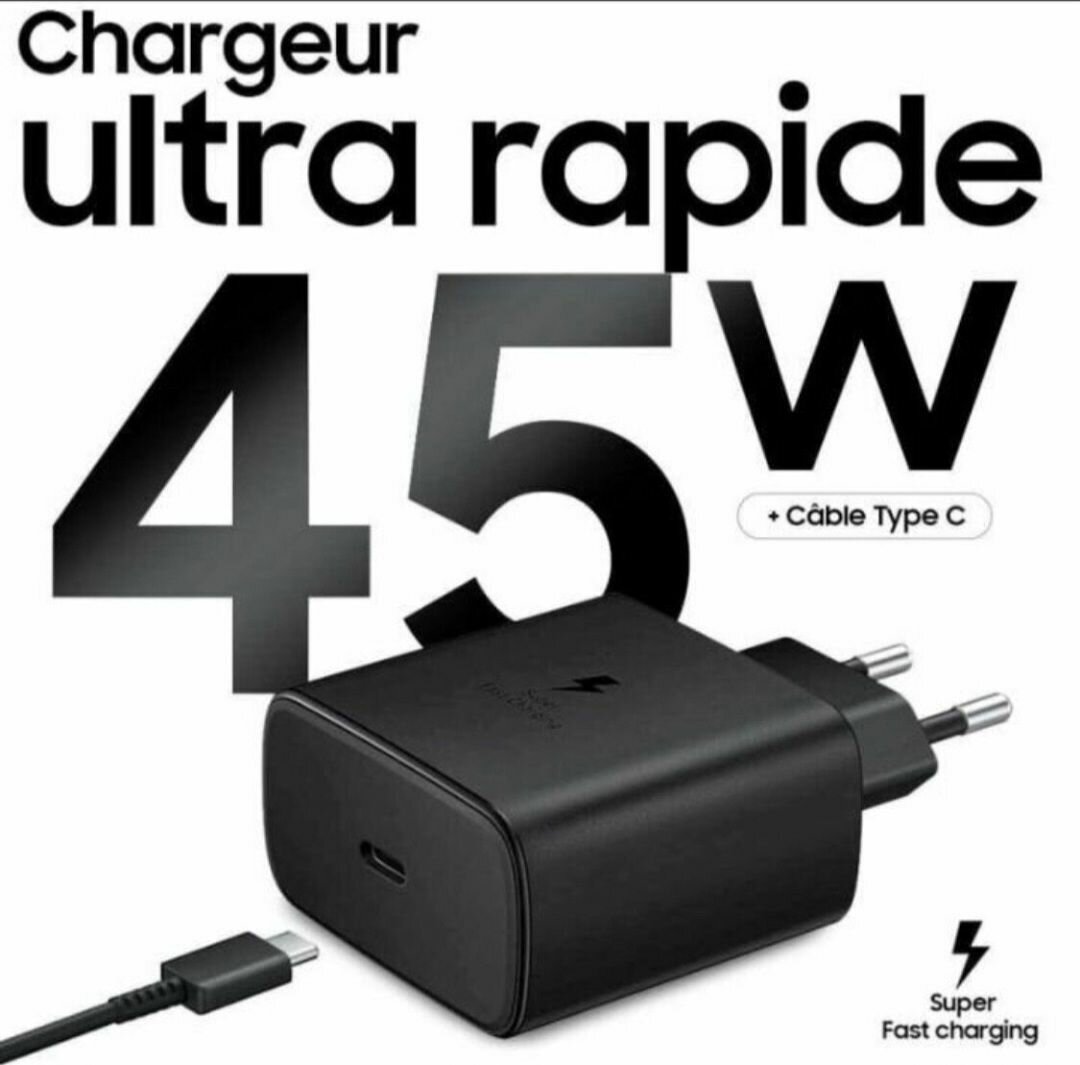 Bénéficiez d'une charge ultra-rapide avec le chargeur mural USB-C Samsung 45 W. Idéal pour les appareils Samsung, ce chargeur prend en charge la charge rapide, garantissant que vos appareils sont prêts en un rien de temps. Sa compatibilité universelle le rend parfait pour les téléphones, les tablettes et bien plus encore.