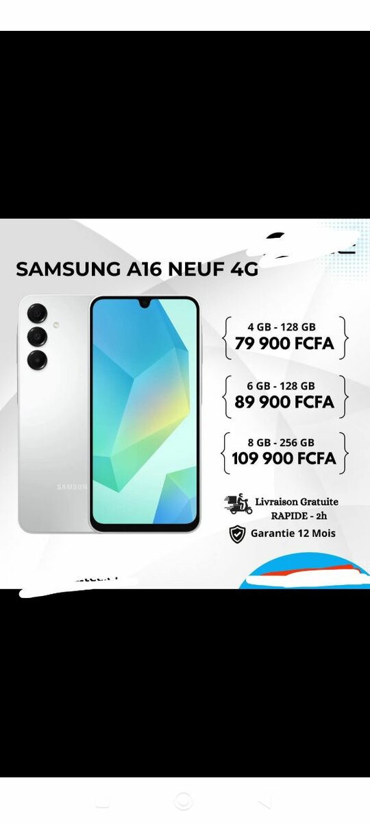 Découvrez le Samsung A16 Neuf 4G, offrant rapidité et efficacité avec ses options de mémoire flexibles jusqu'à 256 Go. Profitez de la garantie de 12 mois et de la livraison gratuite. Idéal pour ceux qui recherchent un smartphone performant avec un excellent rapport qualité-prix.