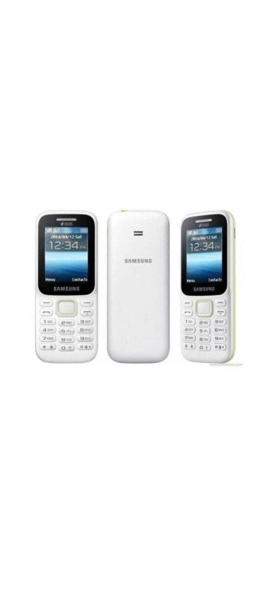 Téléphone portable Samsung classique avec écran compact et clavier. Idéal pour une utilisation simple et efficace au quotidien. Doté d'un design épuré en blanc. Parfait pour rester connecté simplement.bleu noir et blanc