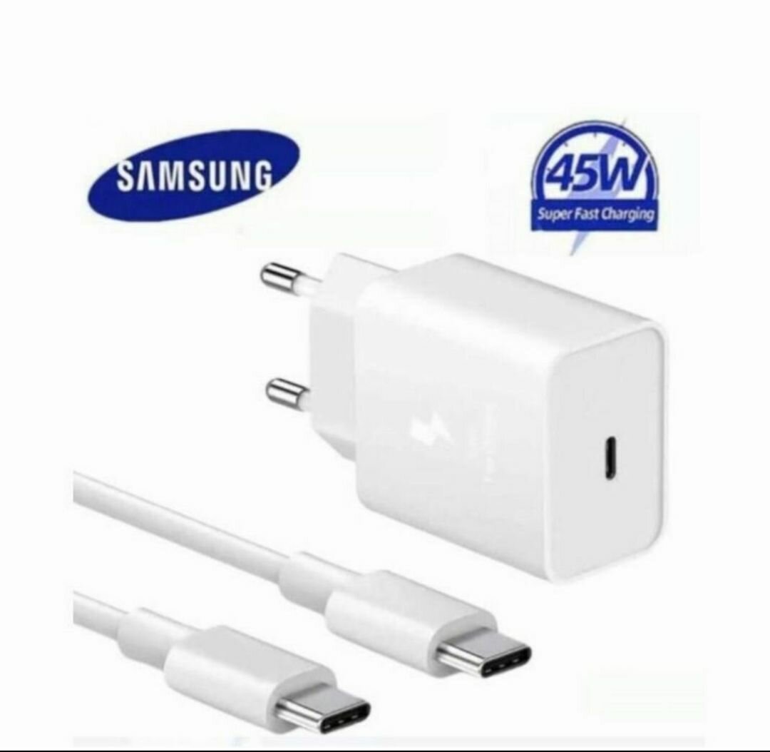 Chargeur rapide Samsung 45W avec câble USB-C. Optimisé pour une charge rapide et efficace de vos appareils compatibles. Parfait pour la maison ou le bureau, ce chargeur assure une alimentation stable et rapide, réduisant le temps de charge de vos téléphones et tablettes.