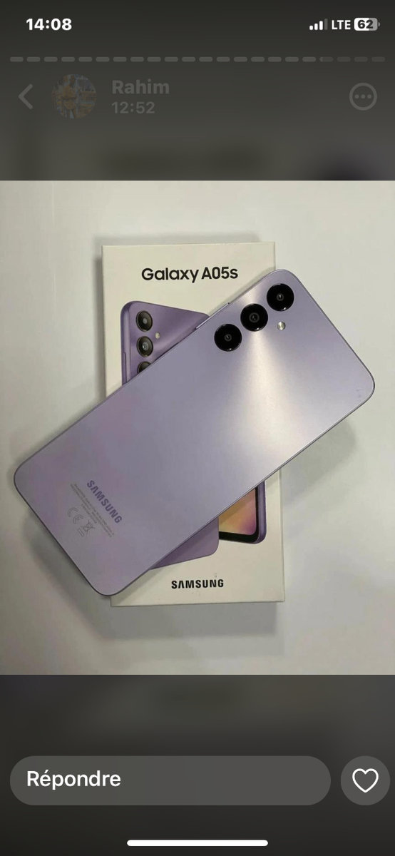 Découvrez le Samsung Galaxy A05s en violet, alliant design élégant et performances puissantes. Idéal pour capturer chaque moment avec sa triple caméra. Parfait pour une utilisation quotidienne grâce à une interface intuitive et une autonomie prolongée.