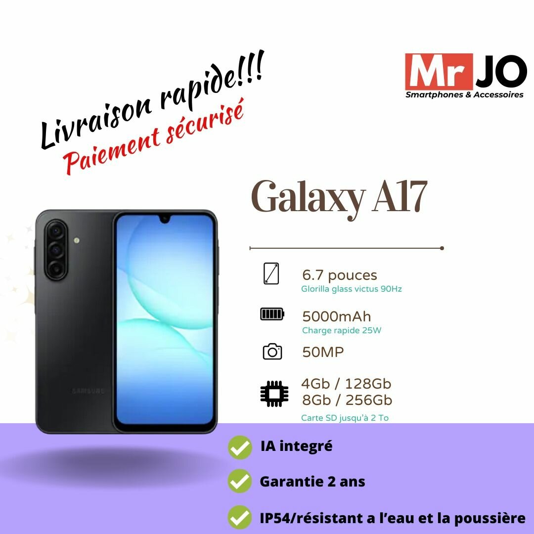 Découvrez le smartphone Galaxy Aa7, doté d'un écran 6.7 pouces Gorilla Glass et d'une caméra 50MP. Avec ses 5000mAh et une charge rapide 25W, restez connecté toute la journée. Stockage extensible a 2 Tera avec 128Gb ou 256Gb. Idéal pour ceux qui recherchent performance et résistance à l'eau et à la poussière.